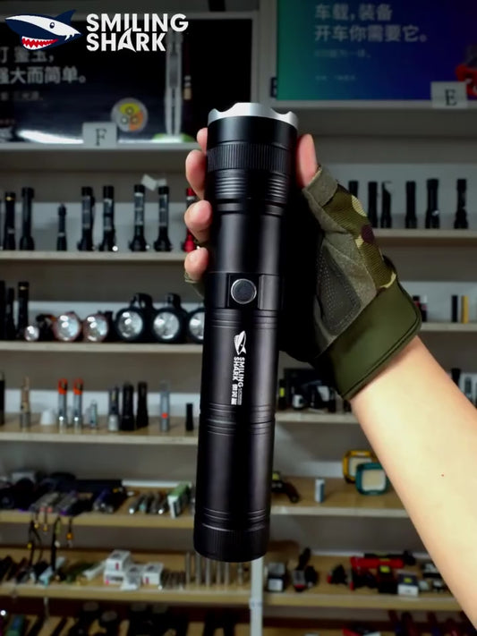 SmilingShark SD7171 Torch light Super Bright M60 6000lm Powerful Flashlight with Power Display 4modes Zoomable Type-C Rechargeable Waterproof for Camping Hiking Household