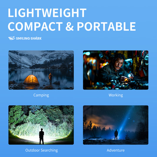 Smiling Shark LED Flashlight -6000 Lumens Super Bright, Zoomable, With Stepless Dimming & USB-C-5229