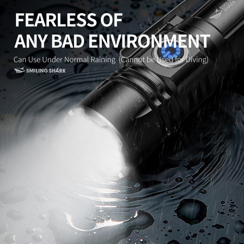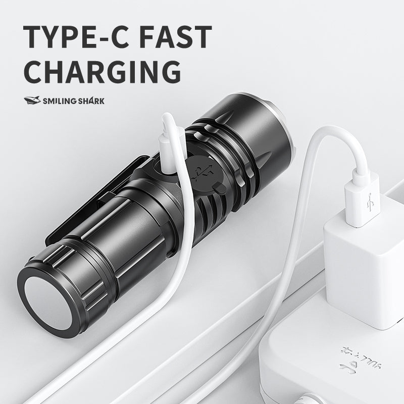 Smiling shark SD5031 Super Bright Portable 6000 Lumens Flashlight With Clip Type-C Rechargeable 3 Modes Zoomable Waterproof Tail With Magnet