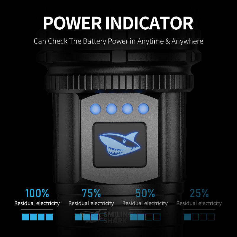Smiling Shark SD-7131 Super Bright 6000 Lumens Led Torch 4 Modes Type-C Rechargeable Flashlight Lighting Zoomable Waterproof With Power Bank Function.