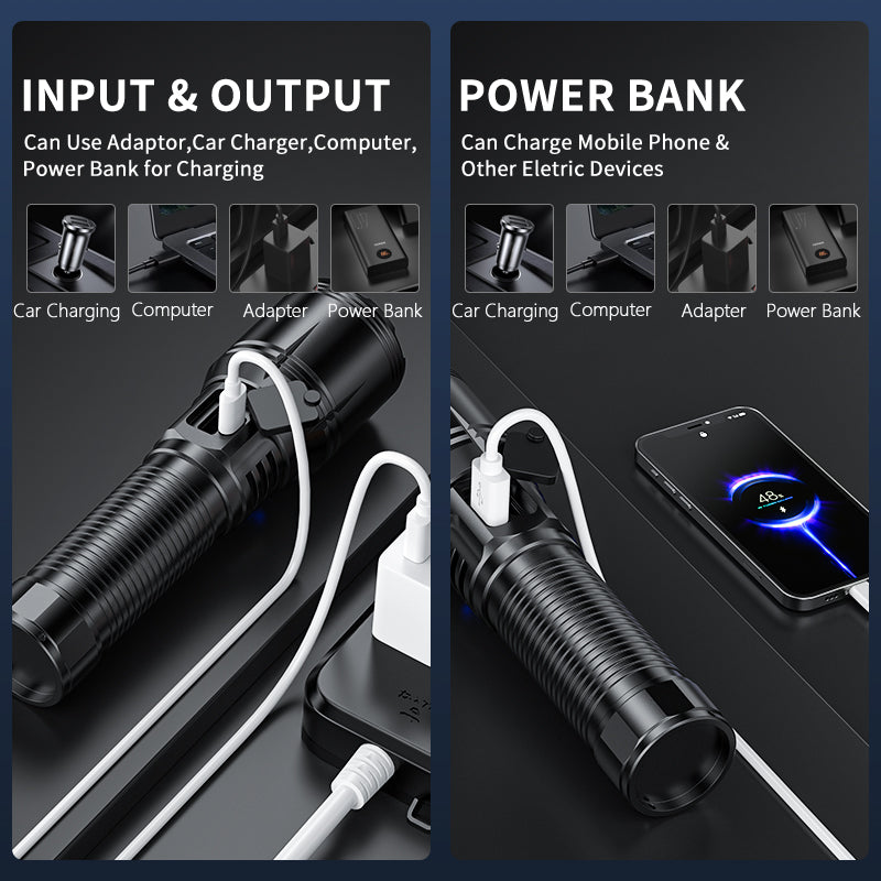 The Smiling Shark SD-7171 is not just a flashlight; it's your ultimate outdoor companion! Combining a 6000-lumen super bright torch with a 3000mAh power bank, this versatile device is perfect for adventurers, campers, and anyone who needs reliable light and power on the go.