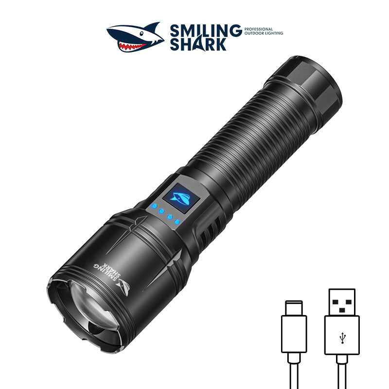 SmilingShark SD7171 Torch light Super Bright M60 6000lm Powerful Flashlight with Power Display 4modes Zoomable Type-C Rechargeable Waterproof for Camping Hiking Household